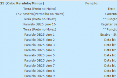 Depois de preparado o cabo e o LCD, começamos a soldagem (mais uma vez muito cuidado neste momento para não soldar um terminal ou mesmo um fio no outro) verifique se esta soldando corretamente seguindo o esquema da tabela.