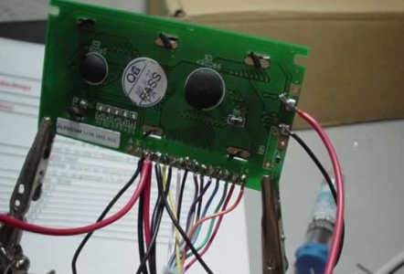 Agora que restou apenas o fio vermelho do conector de floppy, vamos usa-lo no 5V que está alimentado o LCD e vamos fazer uma ligação para o terminal com a letra A, assim o LCD ficaria com o backlight ligado direto, para se instalar uma chave on/off, o procedimento seria cortar um pedaço do tubo termo retrátil como indicado na figura