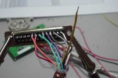 Agora basta continuar seguindo a tabela e soldar as vias no DB25, neste momento também será necessário cortar e estanhar essas vias antes de soldar! também será necessário estanhar o próprio DB25 como foi feito com o LCD.