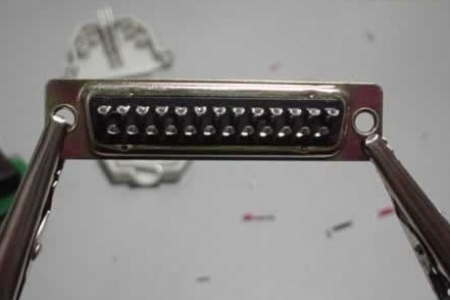 Realmente esta parece ser a parte mais fácil, pois o DB25 aparentemente tem mais espaços entre seus terminais e esta parte da tabela é bem simples (mas tome cuidado para não cometer o erro de soldar os fios na seqüência errada ou mesmo um fio no outro, os efeitos podem ser muito desagradáveis).