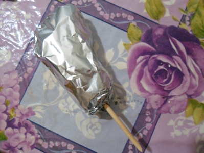 Enrole em um papel alumínio e coloca no congelador por algumas horas.