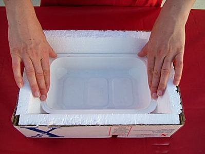 Com cola branca adere os quatro pedaços de esferovite de forma que permita que a embalagem assente na totalidade.