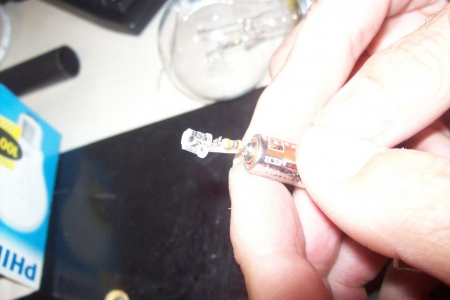 Se você quiser tirar o "foco" do Led; para que a sua luz fique mais difusa; corte a parte arredondada com uma serrinha ou faca de serrinha... antes do passo anterior...